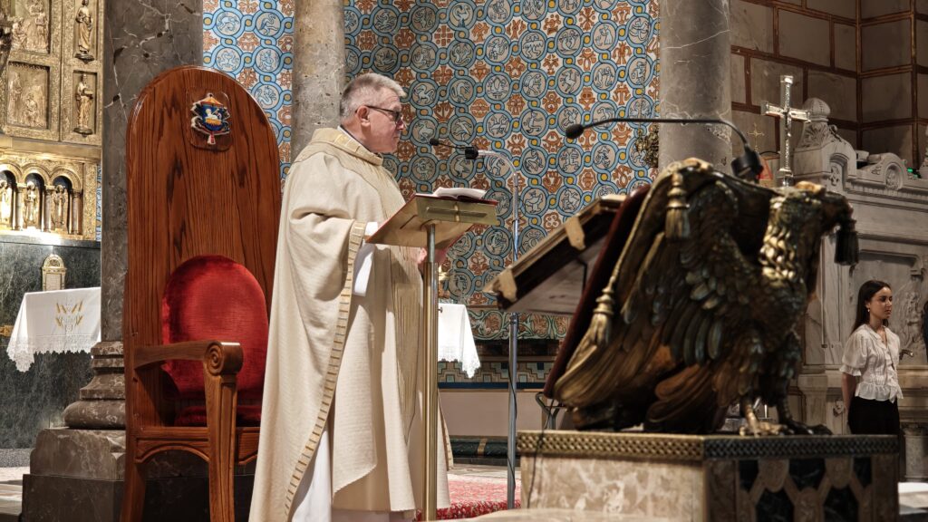 La celebración estuvo presidida por el Vicario General de la diócesis de Oviedo, D. Adolfo Mariño, que en sus palabras dirigidas a los confirmandos les felicitó por este paso a la fe adulta, y les exhortó a vivir la fe desde una hoy necesaria militancia cristiana. «Llevad la convicción de lo que hoy celebráis -apuntó- a los lugares en los que vuestras vidas se despliegan, casa, colegio, universidad, parroquia… y no dejéis nunca de formaros. »