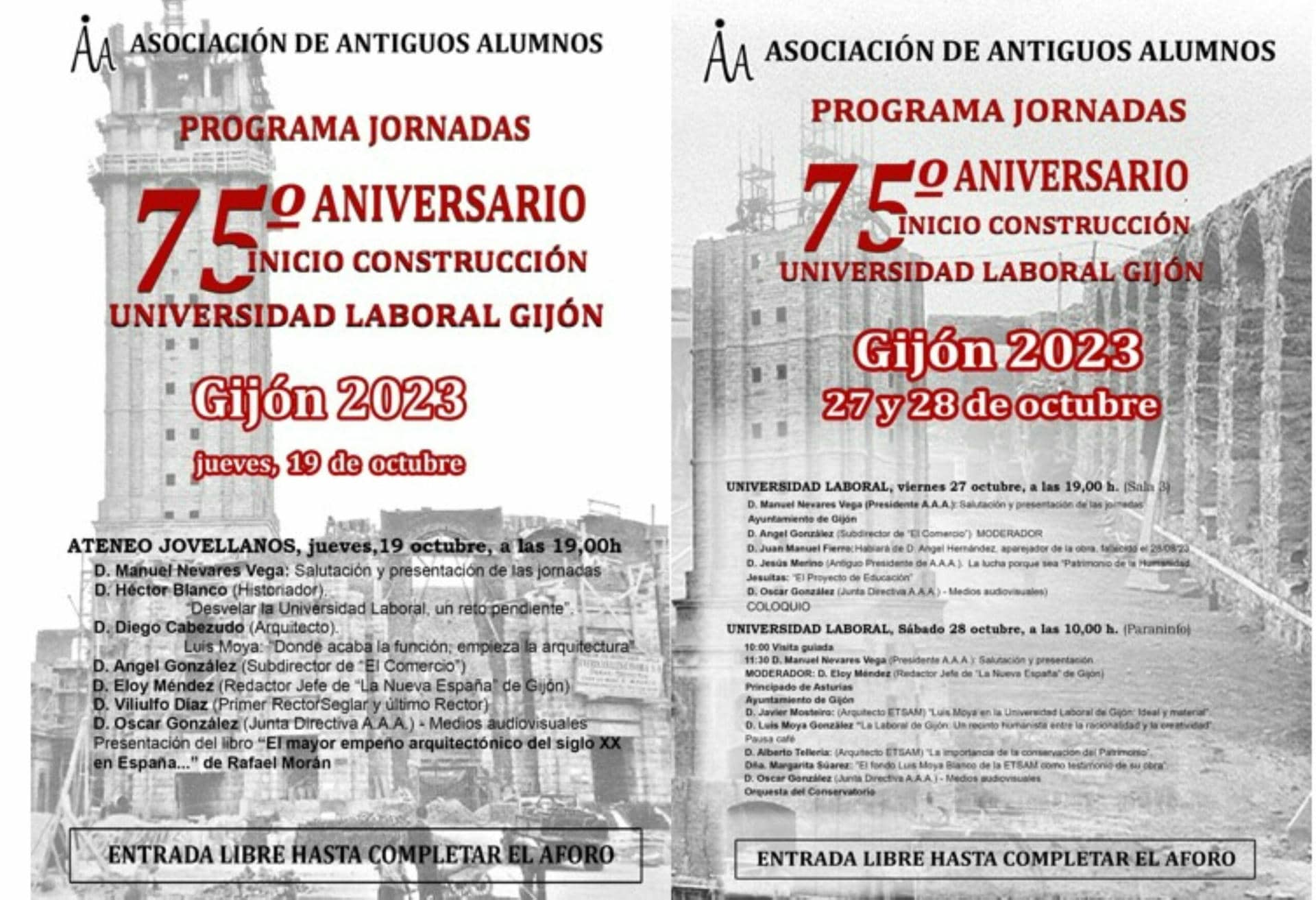 La Asociación de Antiguos Alumnos de la Universidad Laboral de Gijón ha organizado con motivo del 75 Aniversario del inicio de las obras de construcción del edificio unas jornadas que se desarrollarán a lo largo de tres días.