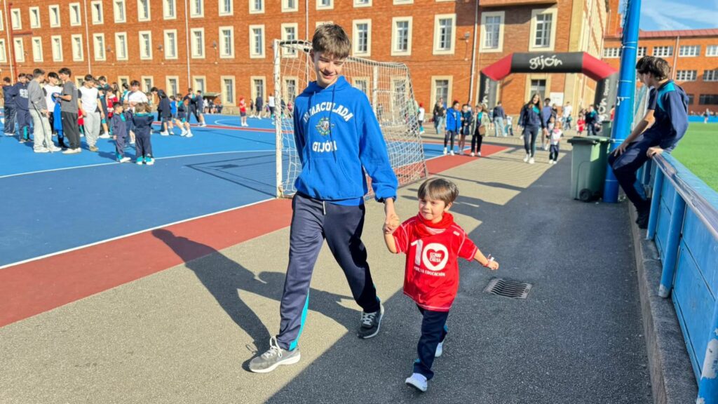 Esta actividad destaca por el hermanamiento entre etapas, donde alumnos de cursos superiores corren junto a los menores,