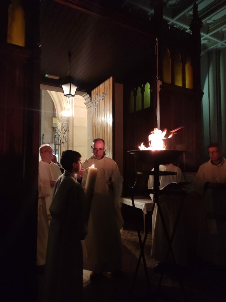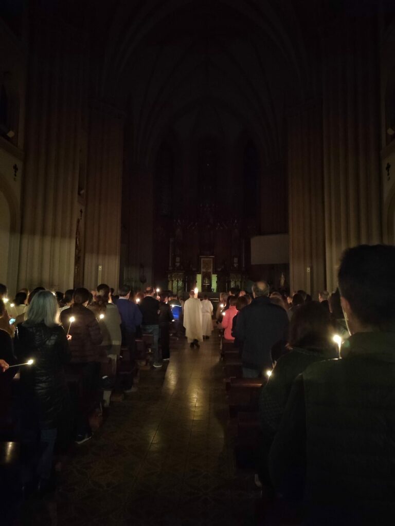 El triduo Pascual en las Salesas terminó y la Pascua comienza con una preciosa vivencia de la Vigilia Pascual. Una celebración marcada por la sucesión de los cuatro símbolos, el fuego, la palabra, el agua y la eucaristía, que nos ayudan a poner nombre al Dios que es luz, que es Palabra, que es fuente de vida y que se nos da, por amor, hasta el final.
