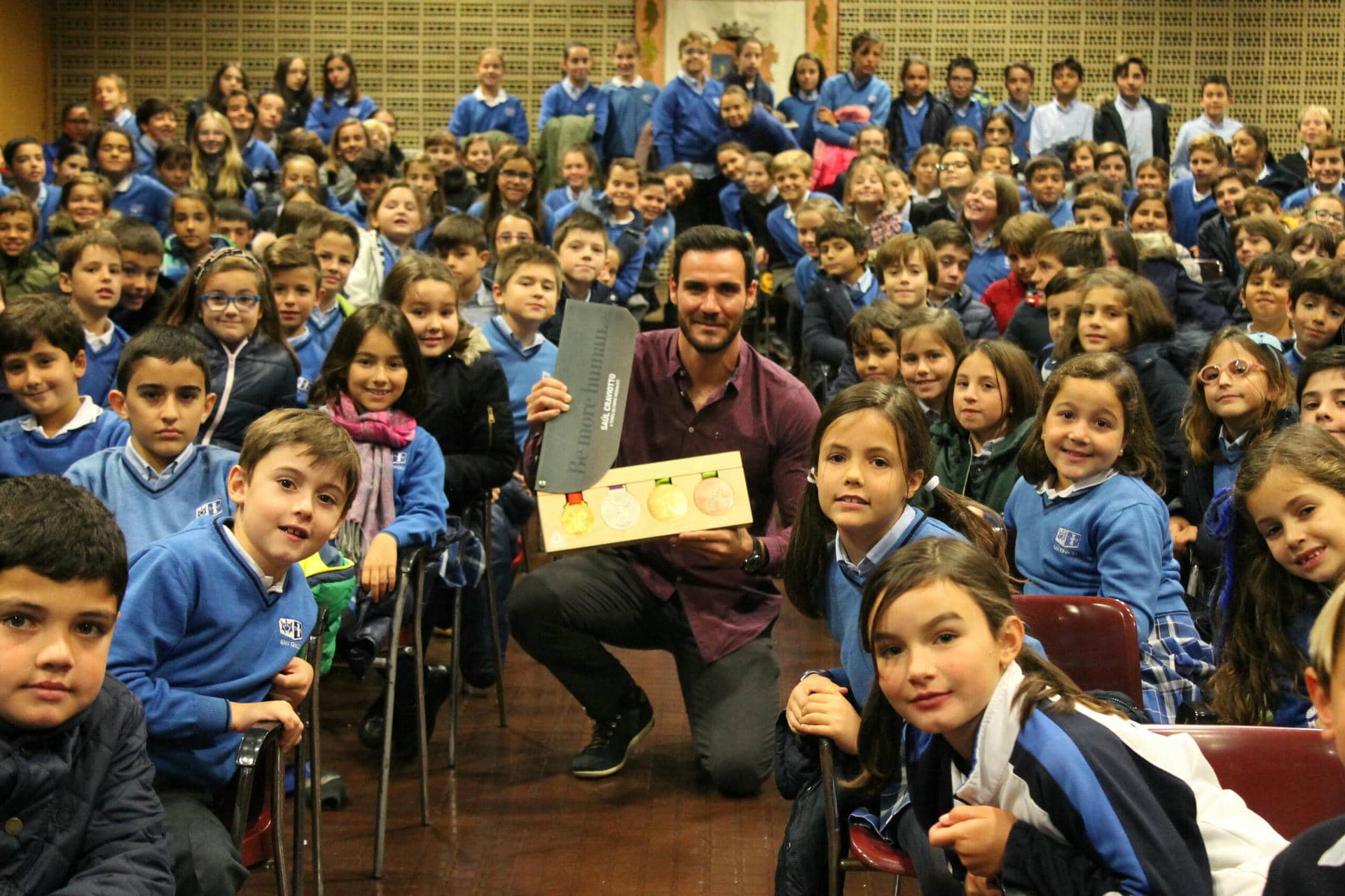 Ayer lunes visitó el colegio San Ignacio de Oviedo el piragüista olímpico Saúl Craviotto, mantuvo un encuentro con los alumnos de primaria y ESO, en el que les habló del esfuerzo y la constancia en el deporte para poder alcanzar las metas que uno se propone, animándolos a compatibilizar los estudios y la actividad deportiva.