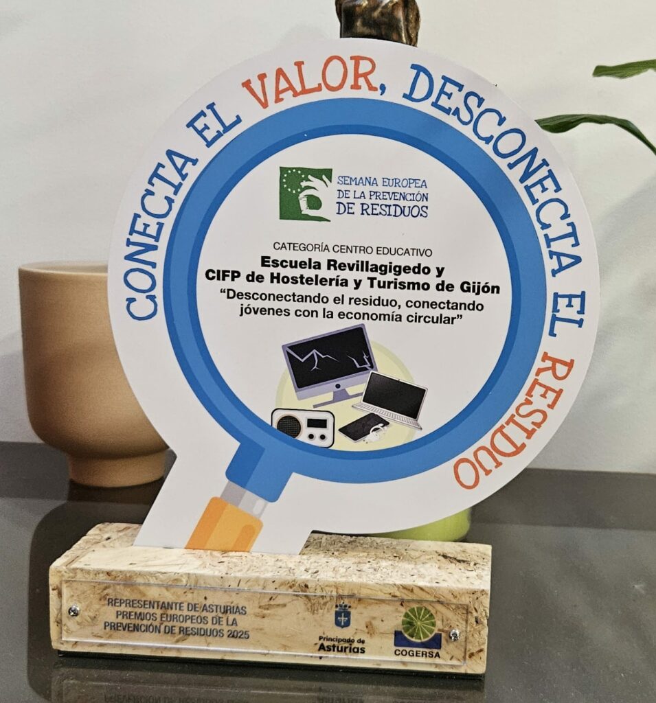 El reconocimiento tiene un valor excepcional: COGERSA ha designado a los cinco representantes de Asturias (uno por cada categoría oficial) que competirán en Europa. Nuestra candidatura, “Desconectando el residuo, conectando jóvenes con la economía circular”, presentada junto al CIFP de Hostelería y Turismo de Gijón, ha logrado alzarse como la ganadora absoluta en la categoría de Centros Educativos, destacando sobre un total de 93 centros participantes en toda la comunidad autónoma.